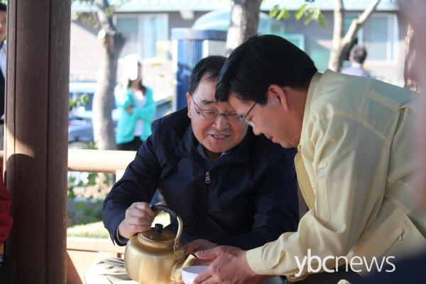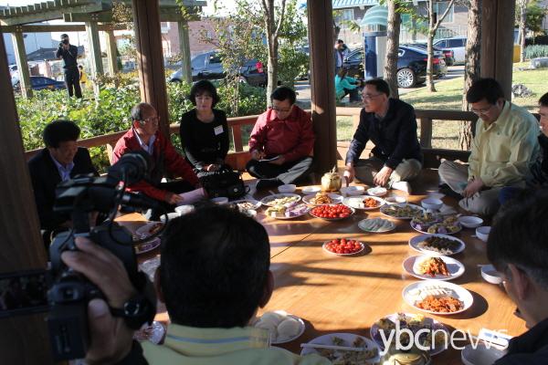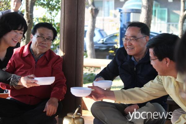 Á¤ ±¹¹«ÃѸ®´Â º¸¦ º£°í ÇöÀå¿¡ Âü¿©ÇÑ ³ó¾÷Àεé°ú ȯ´ãÀ» ³ª´©°í ¾ÈÁß³óÇù ¹Ì°îÁ¾ÇÕó¸®À带 ¹æ¹®ÇØ ÇöÀå °£´ãȸµµ °¡Á³´Ù.