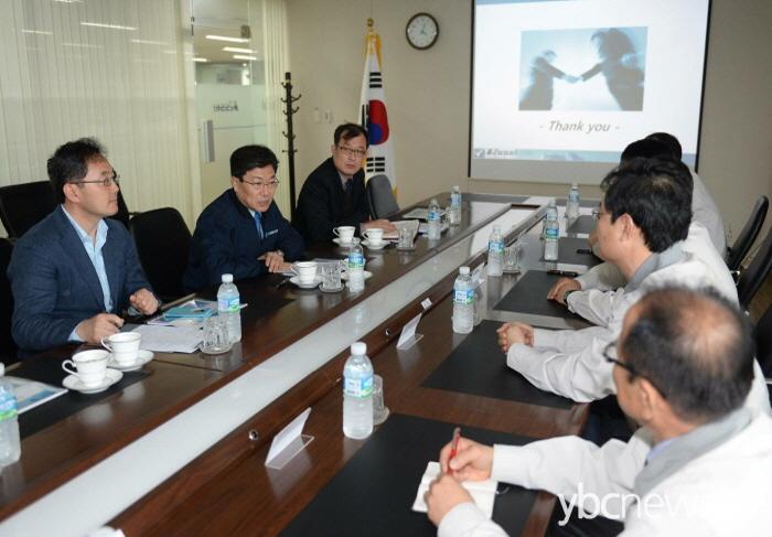 ÇöÀå¿¡¼­ À±Àå°üÀº ¢ßº£¼¿ ¼­±â¸¸ ´ëÇ¥·ÎºÎÅÍ ¾÷ü ¼Ò°³ ¹× »ç¾÷ÇöȲÀ» ûÃëÇÑ ÈÄ »ý»ê°øÁ¤À» µÑ·¯º¸¸ç ±Ù·ÎÀÚµéÀ» °Ý·ÁÇß´Ù.