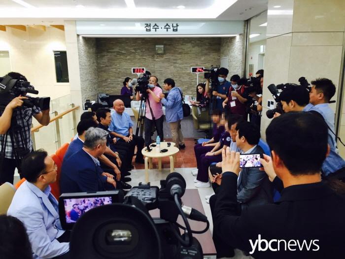 ³²°æÇÊ °æ±âµµÁö»ç¿Í °µæ±¸ °æ±âµµÀÇȸ ÀÇÀåÀ» ºñ·ÔÇÑ µµÀÇ¿øµéÀÌ Áßµ¿È£Èí±âÁõÈıº(MERS¡¤¸Þ¸£½º)À¸·Î Æó¼âÇß´Ù°¡ ÃÖ±Ù Àç°³¿øÇÑ ÆòÅüº¸ðº´¿øÀ» ¹æ¹®ÇØ Á¤»óÈ ³ë·Â ÁßÀÎ ÀÇ·áÁøÀ» °Ý·ÁÇϰí ȯÀڵ鿡°Ô ÀÀ¿øÀÇ ¸Þ½ÃÁö¸¦ ÀüÇß´Ù.