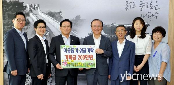 Çѱ¹ÁÖÅðø»ç ¼¿ï³²ºÎÁö»ç äÀçÇö Áö»çÀå°ú ÀÏÇàÀº Áö³ 23ÀÏ Á¶¾ïµ¿ ±¤ÁÖ½ÃÀåÀ» Á¢°ßÇÏ°í ¾î·Á¿î ÀÌ¿ôÀ» À§ÇØ »ç¿ëÇØ ´Þ¶ó¸ç ¼º±Ý 200¸¸¿øÀ» ±âŹÇß´Ù.