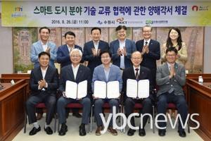 ¼ö¿ø½Ã(½ÃÀå ¿°Å¿µ)´Â 26ÀÏ ½Ãû »óȲ½Ç¿¡¼ Çѱ¹°Ç¼³±â¼ú¿¬±¸¿ø(¿øÀå ÀÌŽÄ), ¼ö¿ø½ÃÁ¤¿¬±¸¿ø(¿øÀå ÀÌÀçÀº)°ú ¡®½º¸¶Æ® µµ½Ã ºÐ¾ß ±â¼ú±³·ù Çù·Â¿¡ °üÇÑ ¾çÇØ°¢¼¡¯¸¦ ü°áÇÏ°í ½Å±â¼úºÐ¾ß¿¡ ´ëÇÑ ¼º°ú‧Á¤º¸¸¦ °øÀ¯Çϱâ·Î Çß´Ù.