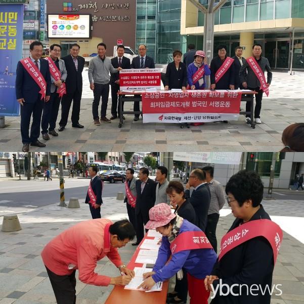 ÀÚÀ¯Çѱ¹´ç Á¦Ãµ¡¤´Ü¾ç ´ç¿øÇùÀÇȸ´Â (23ÀÏ ³»ÅäÀç·¡½ÃÀå°ú 26ÀÏ Á¦Ãµ½Ã¹Îȸ°ü±¤Àå)ÇÏ·ç°¡ ´Ù¸£°Ô ¾ÇȵǴ ¹Î»ýÀÇ À§±â ¾Õ¿¡¼ Áß¼Ò»ó°øÀΰú ÀÚ¿µ¾÷ÀÚ ¼¹ÎµéÀÇ »ýÁ¸±Ç È®º¸¸¦ À§ÇÑ ¡°ÃÖÀúÀÓ±Ý Á¦µµ°³ÇõÀ» Ã˱¸Çϱâ À§ÇÑ ¹ü±¹¹Î ¼¸í¿îµ¿¡±À» Àü°³ÇÏ¿´´Ù