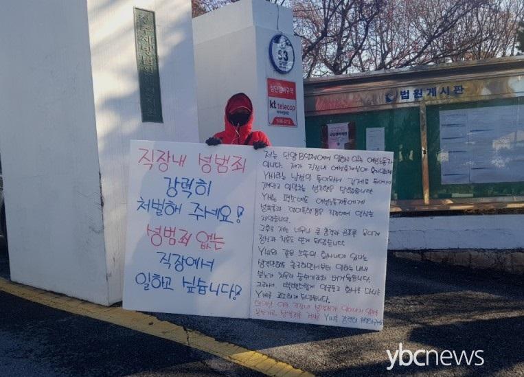 ûÁÖÁö¹æ¹ý¿ø Á¦ÃµÁö¿ø ¾Õ¿¡¼­ ¹é±¤¼ÒÀç ¿©¼º³ëÁ¶¿ø ÇÇÇØÀÚ°¡ Á÷Àå ³» ¼º¹üÁË °­·ÂÈ÷ ó¹ú ÇØ ´Þ¶ó´Â ÇÇÄÏÀ» µé°í 1ÀÎ ½ÃÀ§¸¦ ½ÃÀ§¸¦ ¹úÀ̰í ÀÖ´Ù.