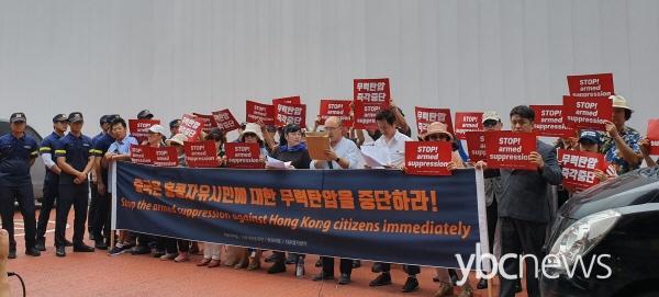 21ÀÏ ¿ÀÈÄ 2½Ã°æ ¼¿ï Áß±¸ ÁÖÇÑ Áß±¹´ë»ç°ü ¾Õ¿¡¼´Â ÃÖ±Ù ¹ß»ýÇÑ È«Äá»çÅÂ¿Í °ü·ÃÇØ Áß±¹ÀÇ È«Äá ź¾ÐÀ» ±ÔźÇÏ´Â ±âÀÚȸ°ß ¹× Áýȸ°¡ ÁøÇàµÆ´Ù.