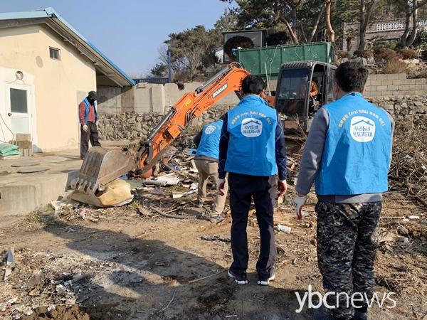 ¹«¾È±º º¹Áö±âµ¿´ë¿øµéÀÌ µ¶°Å³ëÀÎ ÁÖ°Åȯ°æ °³¼±ºÀ»ç¸¦ ½Ç½ÃÇϰí ÀÖ´Ù.(»çÁø=¹«¾È±º)