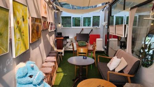 Ä«Æä 'º°ºû ³ª·ç'´Â ÆòÅÃÈ£¿Í ¿¬°áµÇ´Â °º¯ ÀÚÀü°Å µµ·Î ±æ¸ñ¿¡ ÀÖ¾î ÀÚÀü°Å µ¿È£Àΰú ÁֹεéÀÇ ¹ß±æÀÌ ÀÚ¿¬½º·´°Ô À̾îÁö´Â °÷ÀÌ´Ù. ÁÖ¸»ÀÌ¸é ¶óÀÌ´õµéÀÌ Àá½Ã ½¬¾î°¡°í, ÆòÀÏ Àú³á¿¡´Â Áö¿ª ÁֹεéÀÌ »ï»ï¿À¿À ¸ð¿©µå´Â µî Ä«Æä´Â Á¡Â÷ ¹®È¿Í ±³·ù°¡ ¾î¿ì·¯Áö´Â ÀÛÀº »ç¶û¹æÀ¸·Î ÀÚ¸® Àâ°í ÀÖ´Ù. À̰÷¿¡¼´Â ¸ÅÁÖ ¸ñ¿äÀÏ °ø¿¬ÀÌ ¿¸®°í, ±âŸ¸¦ ¹è¿ì°Å³ª ¹«´ë¿¡ ¼³ ±âȸ°¡ Á¦°øµÈ´Ù. ƯÈ÷ ¿î¿µÀÚ´Â ¿µ¾÷Àå ÀϺθ¦ µ¿È£ÀεéÀÇ ¿¬½À½Ç·Î ¹«·á °³¹æÇØ ÁֹεéÀÌ ÀÚÀ¯·Ó°Ô ÀÌ¿ëÇÒ ¼ö ÀÖµµ·Ï Çß´Ù. ÇöÀç´Â 10¿© ¸íÀÇ µ¿È£ÀεéÀÌ Á¤±âÀûÀ¸·Î ¸ð¿© ¿¬½À°ú ±³·ù¸¦ À̾°í ÀÖÀ¸¸ç, Âü¿© ÀοøÀº Á¡Â÷ ´Ã¾î³ª°í ÀÖ´Ù.