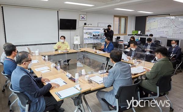 ¿À¼¼Çö ¾Æ»ê½ÃÀåÀÌ 27ÀÏ ¹è¹æµµ½ÃÀç»ý»ç¾÷Áö¸¦ ¹æ¹®ÇØ ¹è¹æµµ½ÃÀç»ýÁÖ¹ÎÀ§¿øÈ¸ ÀÓ¿øµé°ú °£´ãȸ¸¦ °¡Á³´Ù.